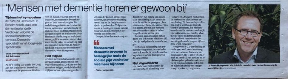 Op 30 januari 2020 sprak ik in Theater De Schalm in Veldhoven over ‘De dementievriendelijke samenleving’. De zaal was gevuld met ondernemers, beleidsmakers, politie en brandweer.