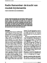 Radio Remember is een online radio station dat elke dag van acht uur ’s ochtends tot tien uur ’s avonds muziek draait die gericht is op ouderen met dementie. Uit onderzoek blijkt dat muziek zorgt voor minder probleemgedrag bij verpleeghuisbewoners met dementie, en leidt tot meer ontspanning en plezier.